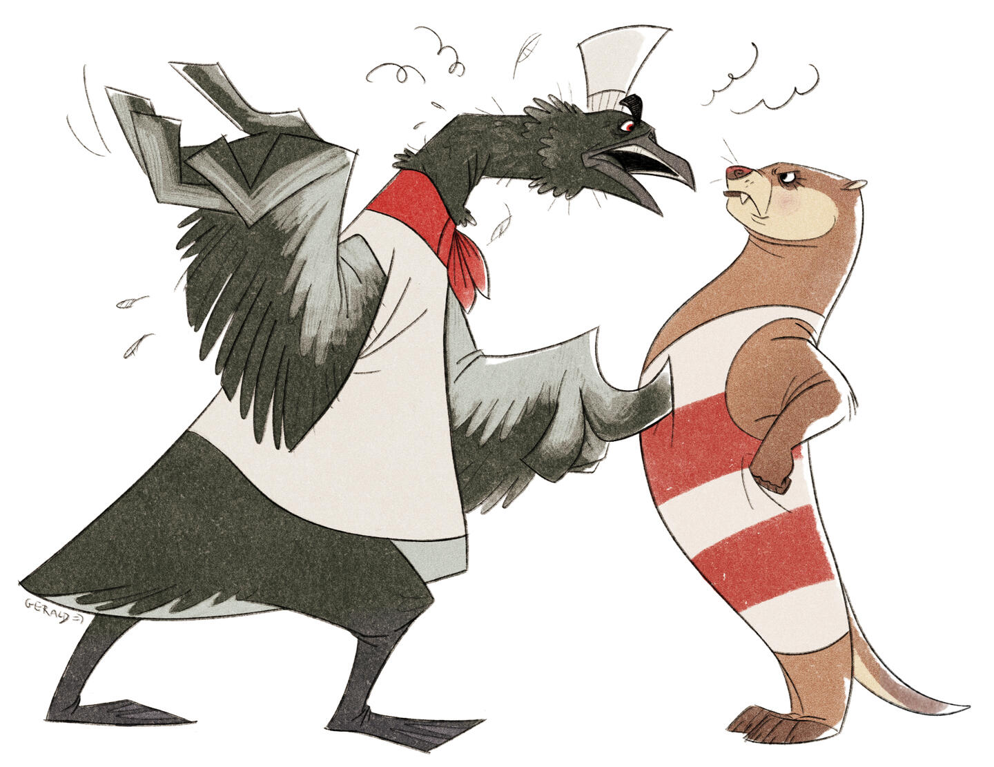 Giovanni Goose arguing with Olive Otter, Shipwrecked 64.