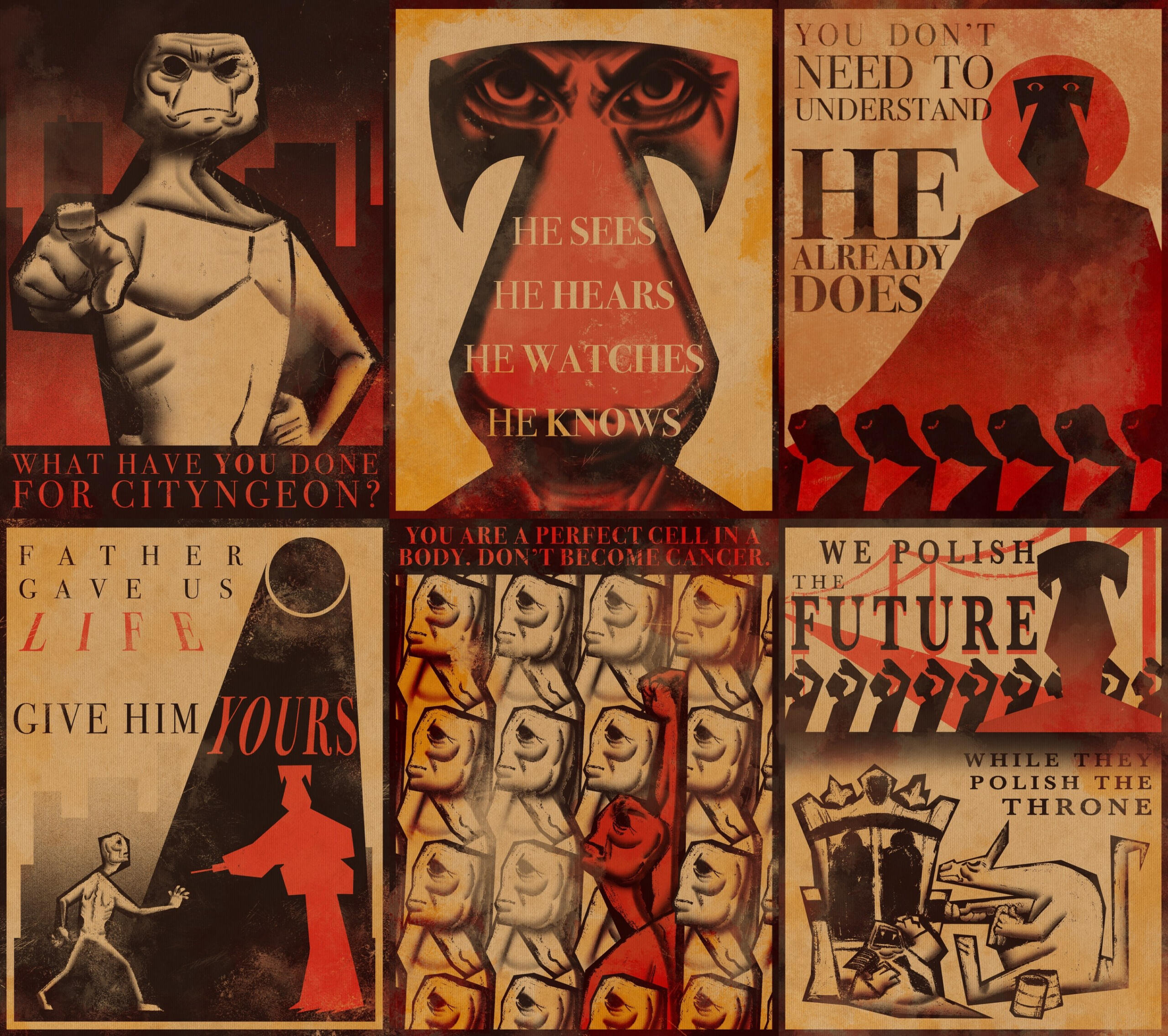 City posters designed for Garten of Banban 8: Anti-devil. Inspired by Dimitri Moor's art.